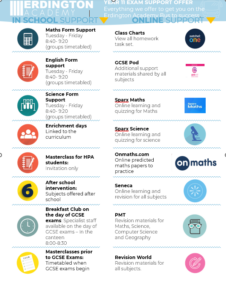 We also offer a range of additional in- school and online support and we encourage all students to take advantage of this. Please see attached.